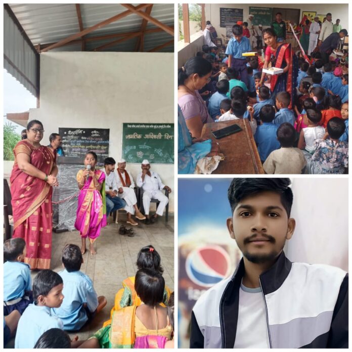 इगतपुरी. भरविर दिनांक ०९/०८/२०२४ रोजी जिल्हा परिषद शाळा भरवीर खुर्द तालुका इगतपुरी जागतिक आदिवासी दिन मोठ्या उत्साहात साजरा. जि.प.प्रा. शाळेत भरवीर खुर्द जागतिक आदिवासी दिन मोठ्या उत्साहाने साजरा करण्यात आला. आपल्या गावातील आदिवासी संघटनेचे श्री सागर भाऊ बांडे यांनी शाळेतील सर्व विद्यार्थ्यांना पेन, चाॅकलेट, खाऊ वाटप करण्यात आले. कार्यक्रम प्रसंगी गावातील पोलीस पा. श्री रमेश टोचे, माजी सरपंच श्री रामभाऊ सारुकते शाळा व्यवस्थापन समितीचे अध्यक्ष समाधान डावखरे, सी.एम.ए. माजी अध्यक्ष श्री शिवाजी काळे, श्री लक्ष्मण शिंदे, श्री भाऊसाहेब सोनवणे, श्री देवदास शिंदे, श्री संजय शिंदे, एस एम सी अध्यक्ष श्री डावखरे. तसेच पालक, बंधू, भगिनी मोठ्या संख्येने उपस्थित व शाळेतील विद्यार्थी, विद्यार्थिनींनी आदिवासी नृत्याचे चे गीतांचे सादरीकरण केले. आदिवासी दिनाचे महत्त्व आपल्याला भाषणातून चांगल्या प्रकारे व्यक्त केले. कार्यक्रमाचे सूत्रसंचालन शाळेच्या मुख्याध्यापिका वालझाडे केले.