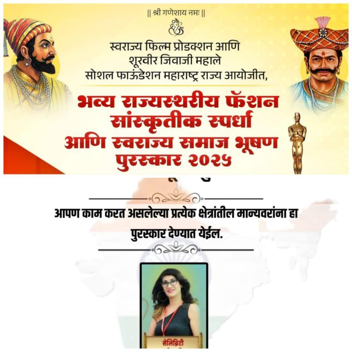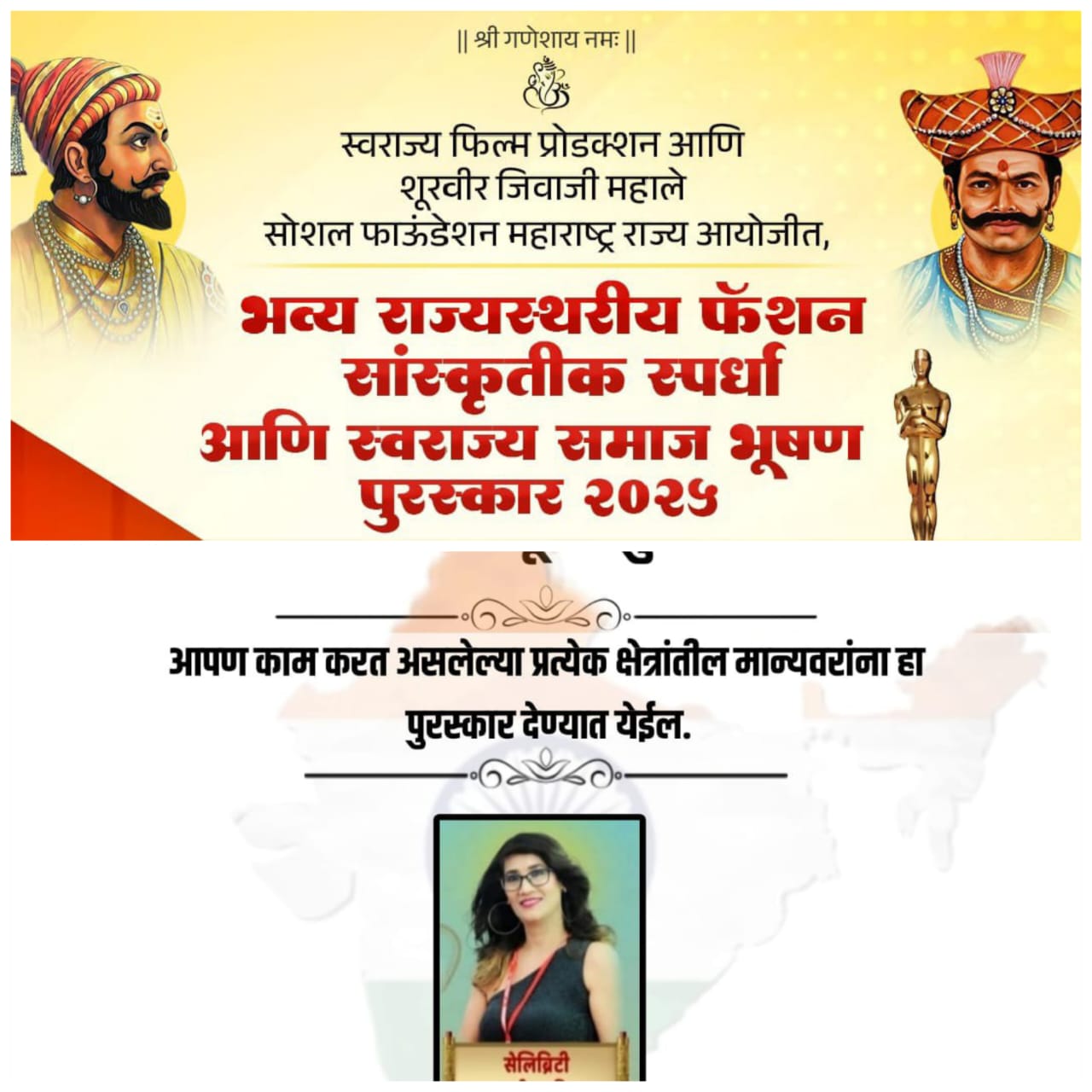 ЁЯФ┤ рднрд╡реНрдп рд░рд╛рдЬреНрдпрд╕реНрддрд░реАрдп рдлреЕрд╢рди рд╕рд╛рдВрд╕реНрдХреГрддрд┐рдХ рд╕реНрдкрд░реНрдзрд╛ рд╡ рд╕реНрд╡рд░рд╛рдЬреНрдп рд╕рдорд╛рдЬ рднреВрд╖рдг рдкреБрд░рд╕реНрдХрд╛рд░ реирежреирел рд╕реЛрд╣рд│рд╛.┬а