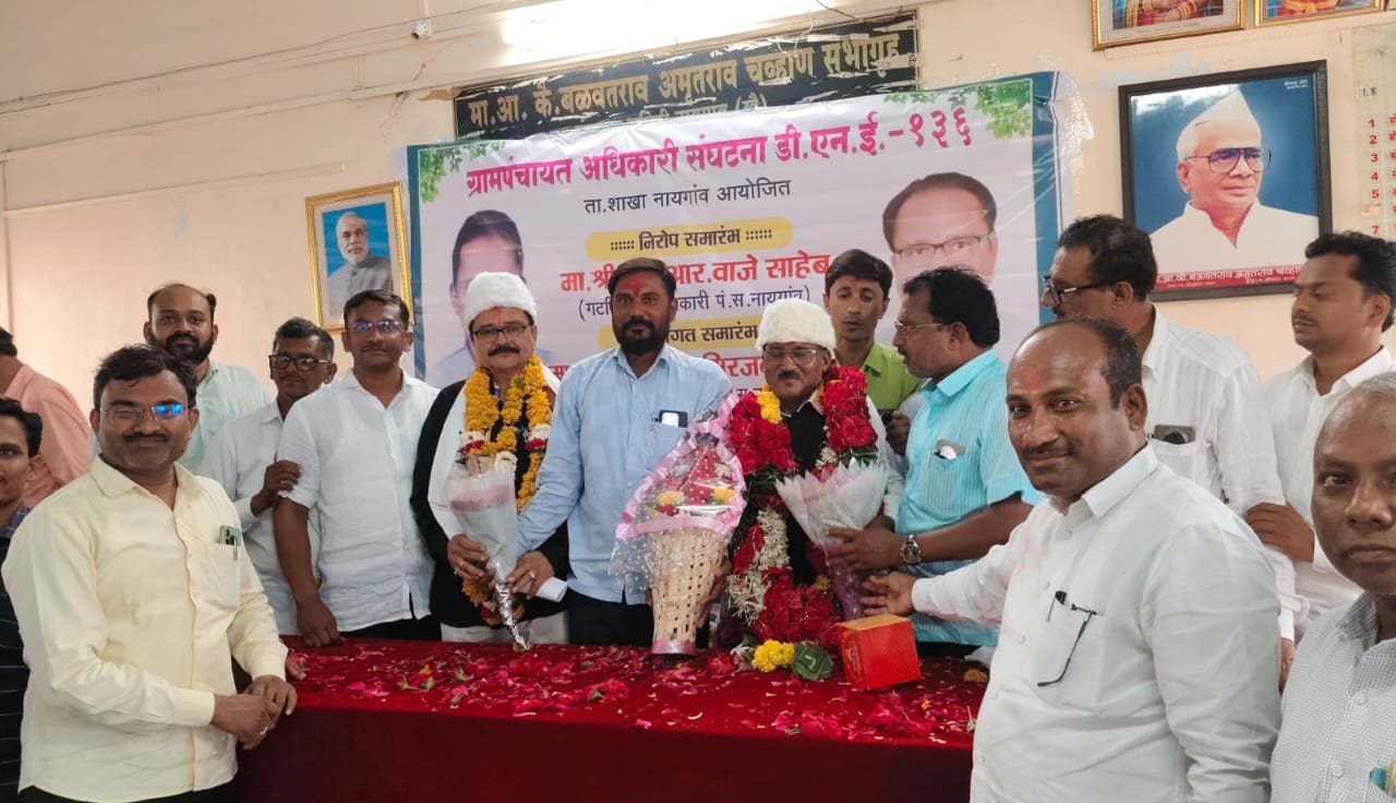 рдирд╛рдпрдЧрд╛рдВрд╡ рдкрдВрдЪрд╛рдпрдд рд╕рдорд┐рддреАрдЪреЗ рдЧрдЯрд╡рд┐рдХрд╛рд╕ рдЕрдзрд┐рдХрд╛рд░реА рдПрд▓ рдЖрд░ рд╡рд╛рдЬреЗ рдпрд╛рдВрдЪреА рдмрджрд▓реА рдзрд╛рд░рд╛рд╢рд┐рд╡ рдЬрд┐рд▓реНрд╣реНрдпрд╛рддреАрд▓ рднреВрдо рдпреЗрдереЗ рдЭрд╛рд▓реА. рддрд░ рдпреЗрдереЗ рдирд╡реНрдпрд╛рдиреЗ рд╕рдВрдЬрдп рдорд┐рд░рдЬрдХрд░ рдпрд╛рдВрдиреА рдкрджрднрд╛рд░ рд╕реНрд╡реАрдХрд╛рд░рд▓рд╛. рдЬрд╛рдгрд╛рд▒реНрдпрд╛рдВрдирд╛ рдирд┐рд░реЛрдк рддрд░ рдпреЗрдгрд╛рд▒реНрдпрд╛рдЪреЗ рд╕реНрд╡рд╛рдЧрдд рд╡ рдЧреНрд░рд╛рдорд╕реЗрд╡рдХрд╛рдВрдЪреНрдпрд╛ рдЧреБрдгрд╡рдВрдд рдкрд╛рд▓реНрдпрд╛рдЪрд╛ рд╕рддреНрдХрд╛рд░ рд╕реЛрд╣рд│рд╛ рдЧреНрд░рд╛рдордкрдВрдЪрд╛рдпрдд рдЕрдзрд┐рдХрд╛рд░реА рд╕рдВрдШрдЯрдиреЗрдЪреНрдпрд╛ рд╡рддреАрдиреЗ рджрд┐ реи рдЬреБрд▓реИ рд░реЛрдЬреА рдпреЗрдереАрд▓ рд╕рднрд╛рдЧреГрд╣рд╛рдд рдореЛрдареНрдпрд╛ рдЙрддреНрд╕рд╛рд╣рд╛рдд рдкрд╛рд░ рдкрдбрд▓рд╛. рдпрд╛ рд╕реЛрд╣рд│реНрдпрд╛рд▓рд╛ рд╡реНрдпрд╛рд╕рдкреАрдард╛рд╡рд░ рдЙрдорд░реАрдЪреЗ рдЧрдЯрд╡рд┐рдХрд╛рд╕ рдЕрдзрд┐рдХрд╛рд░реА рддреЛрдЯрд╛рд╡рд╛рдб, рд╢реНрд░реАрдирд┐рд╡рд╛рд╕ рдкрд╛рдЯреАрд▓ рдЪрд╡реНрд╣рд╛рдг, рднрд╛рдЬрдкрд╛рдЪреЗ рддрд╛рд▓реБрдХрд╛рдзреНрдпрдХреНрд╖ рд╢реНрд░реАрд╣рд░реА рджреЗрд╢рдореБрдЦ рдирд░рдВрдЧрд▓рдХрд░, рдЙрдкрд╡рд┐рднрд╛рдЧреАрдп рдЕрдВрднрд┐рдпрдВрддрд╛ рдбреА рдЖрдп рд╣реЛрдирд░рд╛рд╡, рд╡рд┐рд╕реНрддрд╛рд░ рдЕрдзрд┐рдХрд╛рд░реА рдкреНрд░рдХрд╛рд╢ рдЬрд╛рдзрд╡, рдЧрдгреЗрд╢ рдЯреЛрдирдЧреЗ, рдХреГрд╖реА рдЕрдзрд┐рдХрд╛рд░реА рдЬреЛрдзрд│реЗ, рдХрдХреНрд╖ рдЕрдзрд┐рдХрд╛рд░реА рд╕рд┐рдирдЧрд┐рдХрд░, рдорд╣реЗрд╢ рдореБрдЦреЗрдбрдХрд░, рд╕реЗрд╡рд╛рдирд┐рд╡реГрддреНрдд рд╡рд┐рд╕реНрддрд╛рд░ рдЕрдзрд┐рдХрд╛рд░реА рд╢рд╛рдорд╕реБрдВрджрд░ рд╢рд┐рдВрджреЗ, рдмрджрд▓реАрд╡рд░ рдЧреЗрд▓реЗрд▓реЗ рд╡рд┐рд╕реНрддрд╛рд░ рдЕрдзрд┐рдХрд╛рд░реА рдЬреА.рдмреА.рдХрд╛рдиреЛрдбреЗ, рд╢рд╛рдЦрд╛ рдЕрднрд┐рдпрдВрддрд╛ рдЧреЛрдгреЗрд╡рд╛рд░, рд╕рд╣рд╛рдпреНрдпрдХ рдЕрднрд┐рдпрдВрддрд╛ рдордпреБрд░ рдЬрд┐рд░рд╡рдгрдХрд░, рдЧреНрд░рд╛рдордкрдВрдЪрд╛рдпрдд рдЕрдзрд┐рдХрд╛рд░реА рд╕рдВрдШрдЯрдиреЗрдЪреЗ рддрд╛рд▓реБрдХрд╛рдзреНрдпрдХреНрд╖ рдЯреА.рдЬреА. рдкрд╛рдЯреАрд▓ рд░рд╛рддреЛрд│реАрдХрд░ рдЖрджреА рдорд╛рдиреНрдпрд╡рд░ рдЙрдкрд╕реНрдерд┐рдд рд╣реЛрддреЗ.
