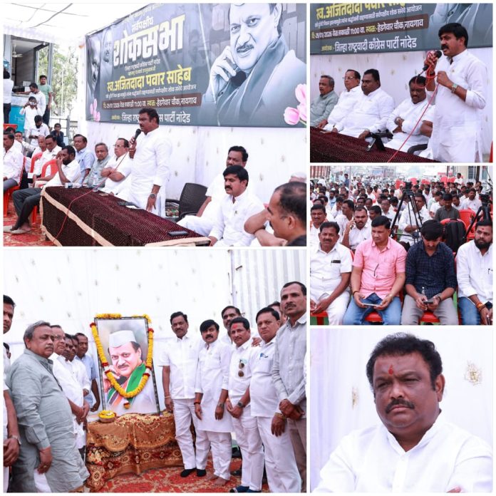 рдирд╛рдпрдЧрд╛рд╡ : рдирд╛рдпрдЧрд╛рд╡ рддрд╛рд▓реБрдХреНрдпрд╛рддреАрд▓ рд╣реЗрдбрдЧреЗрд╡рд╛рд░ рдЪреМрдХ рдпреЗрдереЗ рдорд╣рд╛рд░рд╛рд╖реНрдЯреНрд░ рд░рд╛рдЬреНрдпрд╛рдЪреЗ рдЙрдкрдореБрдЦреНрдпрдордВрддреНрд░реА рдЕрдЬрд┐рдд рдкрд╡рд╛рд░ рдпрд╛рдВрдирд╛ рднрд╛рд╡рдкреВрд░реНрдг рд╢реНрд░рджреНрдзрд╛рдВрдЬрд▓реА рддреЗ рдореНрд╣рдгрд╛рд▓реА рдХреА рдЖрдордЪреЗ рд▓рд╛рдбрдХреЗ рдХрдгрдЦрд░ рдкреНрд░реЗрдорд│ рдЖрдгрд┐ рд╕рджреИрд╡ рдорд╛рд░реНрдЧрджрд░реНрд╢рдХ рдЕрд╕рд▓реЗрд▓реЗ рдЕрдЬрд┐рдд рджрд╛рджрд╛ рдкрд╡рд╛рд░ рдЖрдкрд▓реНрдпрд╛рддреВрди рдирд┐рдШреВрди рдЧреЗрд▓реЗ. рд╣реЗ рд╡рд╛рд╕реНрддрд╡ рд╕реНрд╡реАрдХрд╛рд░рдгрдВ рдЕрд╢рдХреНрдп рд╡рд╛рдЯрдд рдЖрд╣реЗ. рд╣реА рдмрд╛рддрдореА рдРрдХрддрд╛рдЪ рдбреЛрд│реНрдпрд╛рд╕рдореЛрд░ рдЕрдВрдзрд╛рд░ рджрд╛рдЯреВрди рдЖрд▓рд╛ рдЕрд╕реВрди рд╢рдмреНрдж рдЕрдкреБрд░реЗ рдкрдбрд▓реЗ рдЖрд╣реЗрдд. рдЕрд╢реА рднрд╛рд╡рдирд╛ рдЕрдиреНрди рд▓реЛрд╣рд╛ рдХрдВрдзрд╛рд░ рдорддрджрд╛рд░ рд╕рдВрдШрд╛рдЪреЗ рд▓реЛрдХрдкреНрд░рд┐рдп рдЖрдорджрд╛рд░ рдкреНрд░рддрд╛рдк рдкрд╛рдЯреАрд▓ рдЪрд┐рдЦрд▓реАрдХрд░ рдпрд╛рдВрдЪреНрдпрд╛ рдЖрджреЗрд╢рд╛рдиреБрд╕рд╛рд░ рдпрд╛рд╡реЗрд│реЗрд╕ рд░рд╛рд╖реНрдЯреНрд░рд╡рд╛рджреА рдХрд╛рдБрдЧреНрд░реЗрд╕ рдкрдХреНрд╖рд╛рдЪреЗ рдирд╛рдВрджреЗрдб рдЬрд┐рд▓реНрд╣рд╛ рдЕрдзреНрдпрдХреНрд╖ рд╢рд┐рд╡рд░рд╛рдЬ рдкрд╛рдЯреАрд▓ рд╣реЛрдЯрд╛рд│рдХрд░ рдпрд╛рдВрдиреА рд╡реНрдпрдХреНрдд рдХреЗрд▓реА. рдХрд╛рдорд╛ рдкреНрд░рддреА рдкреНрд░рдЪрдВрдб рдирд┐рд╖реНрдард╛ рдЕрд╕рд▓реЗрд▓реЗ рдХреБрд╢рд▓ рдкреНрд░рд╢рд╛рд╕рдХ рджрд┐рд▓реЗрд▓реНрдпрд╛ рд╢рдмреНрдж рдкрд╛рд│рдгрд╛рд░реЗ рдЖрдгрд┐ рдорд╣рд╛рд░рд╛рд╖реНрдЯреНрд░рд╛рддреАрд▓ рдЬрдирддреЗрдЪреЗ рдЕрддреНрдпрдВрдд рд▓реЛрдХрдкреНрд░рд┐рдп рдиреЗрддреЗ рдЙрдкрдореБрдЦреНрдпрдордВрддреНрд░реА рдЕрдЬрд┐рдд рджрд╛рджрд╛ рдкрд╡рд╛рд░ рдпрд╛рдВрдЪреНрдпрд╛ рдирд┐рдзрдирд╛рдЪреА рдмрд╛рддрдореА рдордирд╛рд▓рд╛ рддреАрд╡реНрд░ рд╡реЗрджрдирд╛ рджреЗрдгрд╛рд░реА рдЖрд╣реЗ. рддреНрдпрд╛рдВрдЪреНрдпрд╛ рдЬрд╛рдгреНрдпрд╛рдиреЗ рдорд╣рд╛рд░рд╛рд╖реНрдЯреНрд░ рдПрдХрд╛ рд╕рдВрд╕реНрдХреГрдд рдЕрднреНрдпрд╛рд╕реВ рдЖрдгрд┐ рд╡рд┐рдХрд╛рд╕рд╛рдд рдорд╣рддреНрддреНрд╡рдкреВрд░реНрдг рдпреЛрдЧрджрд╛рди рджреЗрдгрд╛рд▒реНрдпрд╛ рд╡реНрдпрдХреНрддреАрдорддреНрддреНрд╡рд╛рд▓рд╛ рдореБрдХрд▓рд╛ рдЖрд╣реЗ. рдЕрдЬрд┐рддрджрд╛рджрд╛рдВрдирд╛ рдорд╣рд╛рд░рд╛рд╖реНрдЯреНрд░ рдХрдзреАрд╣реА рд╡рд┐рд╕рд░реВ рд╢рдХрдгрд╛рд░ рдирд╛рд╣реА. рдЕрд╢реА рд╢реЛрдХ рднрд╛рд╡рдирд╛ рддреНрдпрд╛рдВрдиреА рдпрд╛рд╡реЗрд│реЗрд╕ рд╡реНрдпрдХреНрдд рдХреЗрд▓реА. рдЖрдкрд▓реНрдпрд╛ рдЕрдиреЛрдЦреНрдпрд╛ рдХрд╛рд░реНрдпрд╢реИрд▓реА рдореБрд│реЗ рддреНрдпрд╛рдВрдиреА рдкреНрд░рд╢рд╛рд╕рдирд╛рдд рд╡реЗрдЧрд│рд╛ рджрд░рд╛рд░рд╛ рдирд┐рд░реНрдорд╛рдг рдХреЗрд▓рд╛ рд╣реЛрддрд╛. рд░рд╛рдЬрдХрд╛рд░рдгрд╛рдд рд╢рдмреНрджрд╛рд▓рд╛ рдЬрд╛рдгрд╛рд░реЗ рдиреЗрддреГрддреНрд╡ рдореНрд╣рдгреВрди рддреЗ рд╕рд░реНрд╡ рдкрд░рд┐рдЪрд┐рдд рд╣реЛрддреЗ. рдЬрдирддреЗрдд рд░рдордгрд╛рд░рд╛, рдЬрдирддреЗрд╕рд╛рда